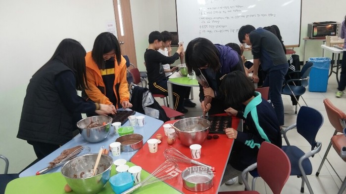 경북 구미시 선산청소년수련관이 최근 청소년들의 건전한 여가시간 활용을 위한 재미있는 토요 체험활동 프로그램을 운영해 참여 학생들이 쿠키 만들기 체험을 진행하고 있다.