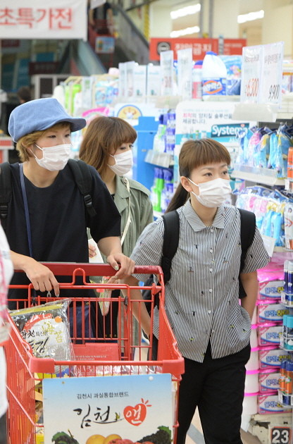 정부가 메르스 대응 대책을 발표한 7일 오전 서울시내 한 대형마트를 찾은 마스크를 착용한 시민들이 매장을 둘러보고 있다.