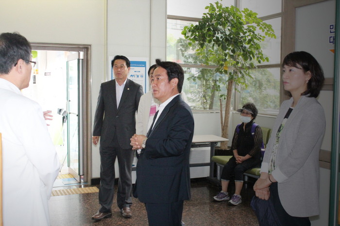 새누리당 서대문갑 이성헌 당협위원장이 9일 오전 지역내 메르스 대응의 최일선 현장인 서대문구 보건소를 방문해 현재 상황을 점검하고 의료인들을 격려하고 있다. 이날 이성헌 위원장은 구민에게 질병이 확산되지 않도록 보건 인력은 물론 관계기관이 혼연일체가 되어 막아내는 것이 중요하다고 당부했다. (사진제공=새누리당 서대문갑 당협위원회)