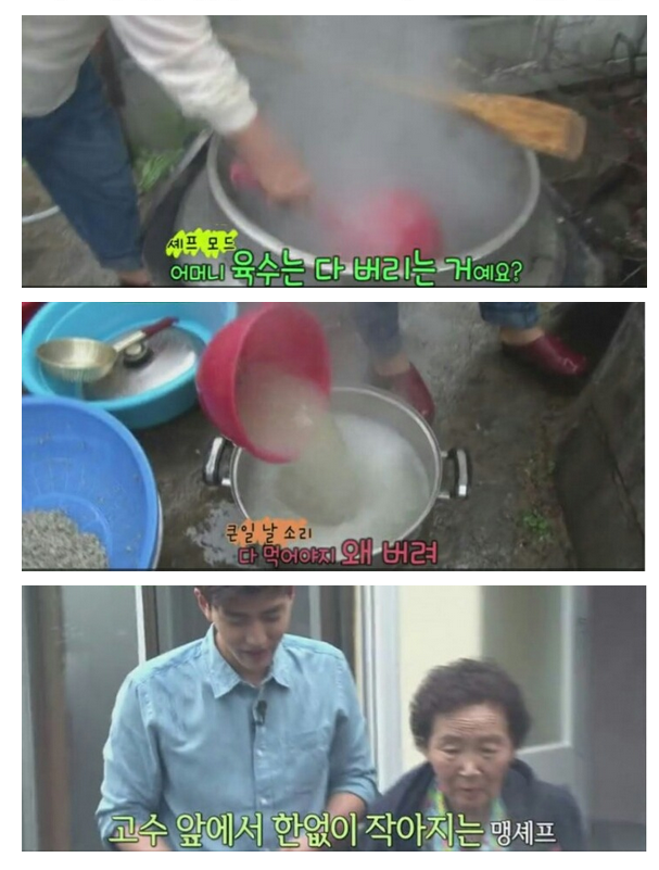 과거 맹기용 셰프는 한 요리 프로그램에 출연해 재첩국 고수를 만났다. 이날 맹기용 셰프는 고수에게 "어머니, 육수는 다 버리는 거예요?"라고 물었다.