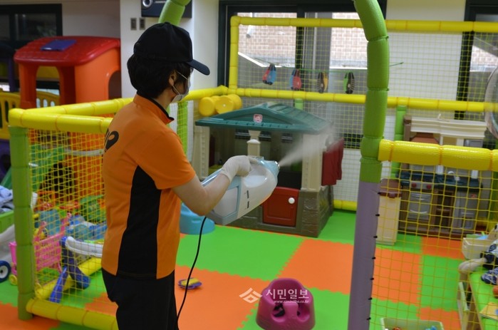 서대문소방서는 사회적 약자가 밀집한 지역내 노유자시설인 구세군두리홈 미혼모시설, 홍은종합사회복지 등을 방문해 감염병으로부터 취약한 노유자를 보호하고자 감염예방 교육 및 소독을 실시했다. 사진은 아이들이 이용하는 놀이기구를 소독 중인 소방관의 모습. (사진제공=서대문소방서)