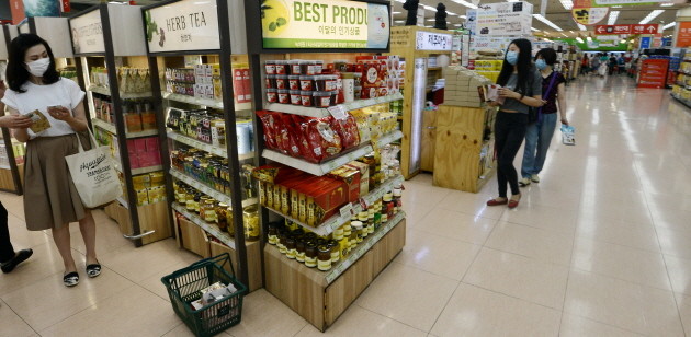 메르스(MERS·중동호흡기증후군)의 공포가 전국으로 확대되고 있는 10일 오전 서울시내의 한 대형마트에서 외국인 관광객들이 마스크를 쓰고 쇼핑을 하고 있다.