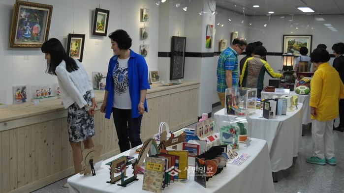 전남 고흥평생교육관이 최근 손으로 만드는 꿈이라는 주제로 열린 '토탈공예전'을 개최했다. 사진은 공예전을 찾은 관람객들이 공예품들을 살펴보고 있는 모습.(사진제공=전남교육청)