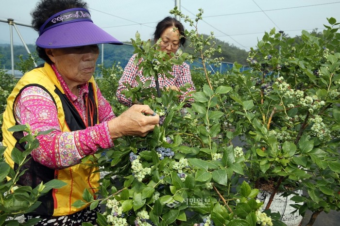 15일 전남 장흥군 용산면 묵촌마을의 한 농가에서 블루베리 수확이 한창이다. 블루베리는 안토시아닌 성분이 풍부해 눈 건강에 좋고 노화방지에도 효과가 있는 것으로 알려져 있다. (사진제공=장흥군청)