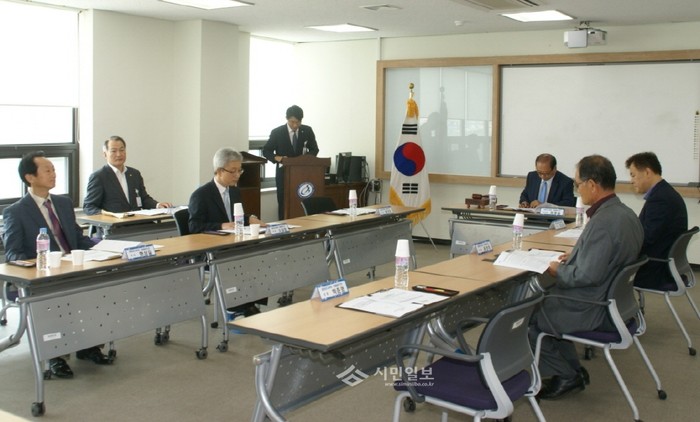 충남교육청이 지난 5일 오전 10시 천안교육지원청 제2층 회의실에서 '2015년도 충남도교육청 청렴옴부즈만 회의'를 열었다. 사진은 이날 회의 참여자들이 옴부즈만이 불합리한 제도를 개선할 수 있는 정책제안 방안에 대해 논의 중인 모습.(사진제공=충남교육청)
