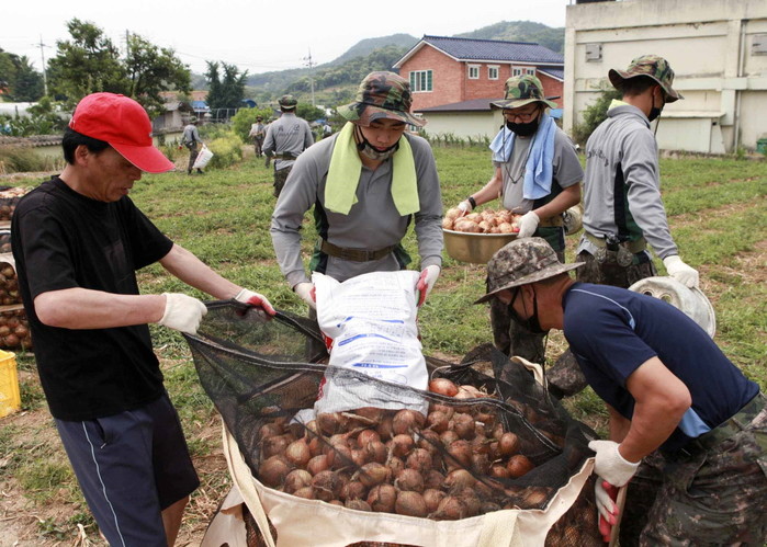 육군 장병들, 양파 수확 구슬땀