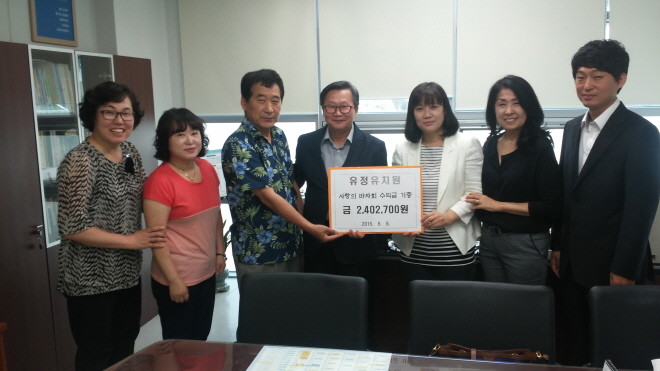 서울 은평구 녹번동에 위치한 유정유치원에서 최근 '사랑나눔 바자회'를 통해 얻은 수익금 전액 240만2700원을 녹번동 복지두레에 기탁했다. 사진은 관계자들이 수익금을 기탁하는 모습. (사진제공=은평구청)