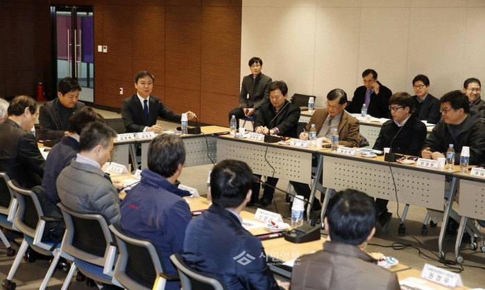 | ▲ 역사문화지구 벤치마킹=성북동 역사문화지구 조성을 위해 전북 전주시 교동 한국전통문화전당에서 전통문화도시 벤치마킹에 나선 김영배 성북구청장과 자문위원들이 김승수 전주시장과 함께 워크숍을 갖고 있다. (사진제공=전주시청) | ||