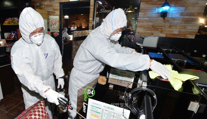 서울시가 메르스 확산을 막기 위해 16일 오전 서울 종로의 한 PC방에서 방역 소독작업을 실시하고 있다.