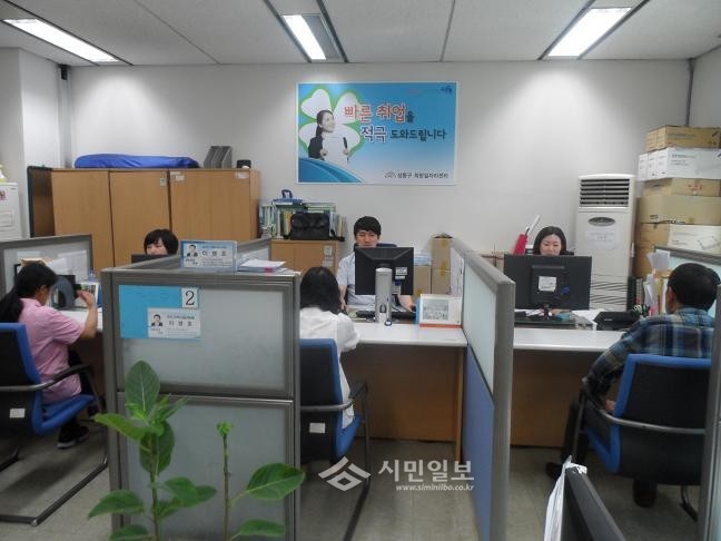 서울 성동구가 최근 상반기 공공일자리사업 참여자를 대상으로 구청 1층 희망일자리센터에서 맞춤형 취업컨설팅을 실시했다. 사진은 취업컨설팅을 찾은 참여자들이 직업상담사와 1대 1 상담을 진행 중인 모습. (사진제공=성동구청)