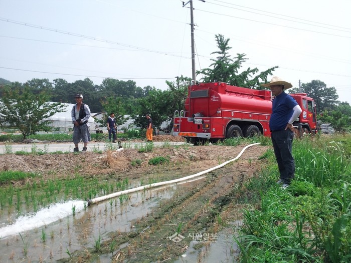 도고면, 가뭄해갈 위한 농업용수 소방차 투입
