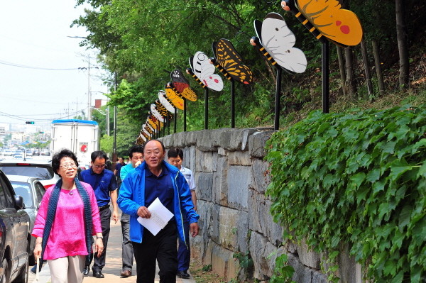 홍미영 부평구청장, 나비공원 진입로 조형물 설치 현장 방문