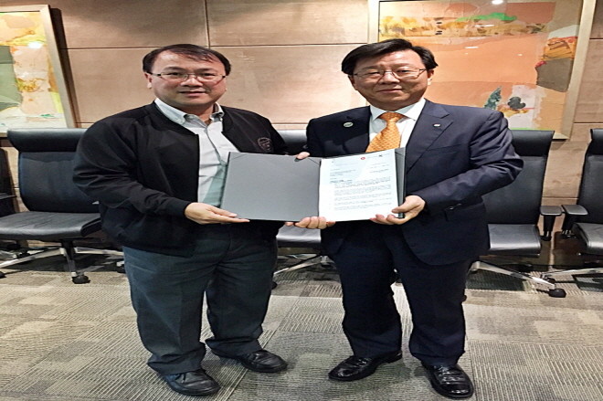 | ▲ 지난 19일 싱가포르 육상교통청 청사에서 열린 싱가포르 T3008 프로젝트 계약 서명식에서 오두환 GS건설 인프라부문 대표(오른쪽)와 추아총켕 싱가포르 LTA 부사장(왼쪽)이 계약서에 서명 후 기념 촬영하고 있다. | ||
