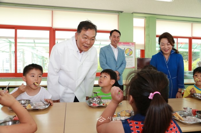 장만채 전남도교육감, 무안 일로초교 급식 현장지도