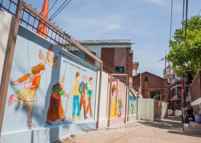 이와함께 청소년들의 우범지역으로 우려가 높았던 좁고 침침한 골목길은 ‘봄이와 할머니의 바라보기’의 테마 골목으로 아름답게 변화시켰다.