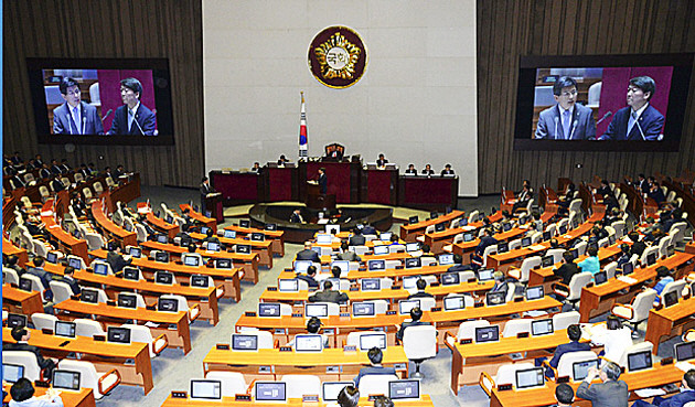 23일 서울 여의도 국회에서 열린 제334회 국회(임시회) 제5차 본회의에서 안철수 새정치민주연합 의원이 황교안 국무총리에게 대정부질문 하고 있다.