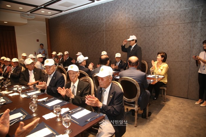지난 23일 서울 서초구가 호국보훈의 달을 맞아 실시한 ‘6.25참전유공자 초청 위로연’에 참석한 대한민국 6.25참전유공자회 서초지회 30여명의 호국영웅 소개가 이뤄지고 있다. (사진제공=서초구청)