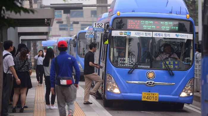 파업을 예고했던 서울 시내버스 노조가 파업 직전 극적으로 협상을 타결한 25일 오전 서울역 버스승강장에서 시내버스가 정상 운행하고 있다. 서울 시내버스 노사는 지난 24일 오후 2시부터 서울지방노동위원회 중재로 조정회의를 진행하고 파업을 예고한 새벽 4시를 10여분 앞두고 임금 협상을 타결했다. 임금 인상폭은 지방노동위원회가 제시한 조정안을 노사가 받아 들여 3.7% 인상으로 합의했다. /뉴시스