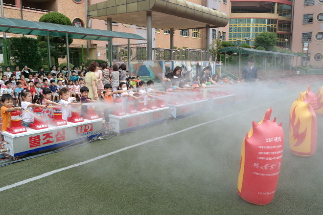 부천 상원초등학교, '체험형 재난안전교육' 실시경기 부천시 상원초등학교가 최근 전교생을 대상으로 학교 운동장에서 '체험형 재난안전 교육'을 실시했다. 사진은 이날 교육에 참여한 학생들이 소화기를 통해 가상 화재진압 체험을 하고 있는 모습.(사진제공=부천교육지원청)
