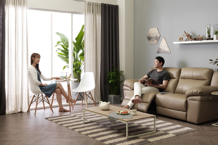 세 번째, 천연자재를 사용하고 소파 양쪽에 리클라이닝 기능을 적용했음에도 보다 부담없는 가격에 만나볼 수 있다. ‘프라임’ 소파 4인용 양쪽 리클라이너는 149 만원, 3인용 양쪽 리클라이너는 119만원이며 중후하고 차분한 느낌의 ‘모건 브라운’ 색상과 따듯한 느낌의 ‘허니 모카’ 색상 중에 선택 가능하다.