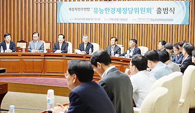 다가오는 총선과 대선을 앞두고 새정치민주연합의 경제정책을 총괄할 기구인 ‘유능한경제정당위원회’가 30일 출범했다. 서울 여의도 국회에서 열린 출범식에서 문재인 대표가 발언하고 있다.