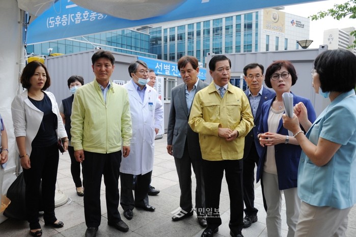 | ▲ 최근 '메르스 진료병원'으로 지정된 '서울의료원'을 방문한 박래학 서울시의회 의장(오른쪽에서 네 번째)이 관계자로부터 애로사항을 청취하고 있다.(사진제공=서울시의회) | ||