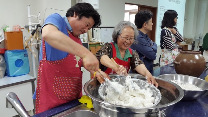 경기 포천시농업기술센터는 최근 포천시민 24명을 대상으로 '농촌생활아카데미 우리술교실 교육과정'을 운영했다. 사진은 교육 참여자들이 전통방식 그대로 우리 술을 만들고 있는 모습.(사진제공=포천시청)