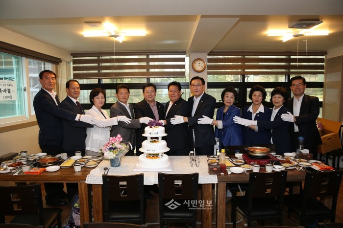지난 1일 '열린의회, 으뜸의정'을 목표로 출범한 제7대 서울 종로구의회가 1주년을 기념하기 위해 지역내 한 식당에서 기념식을 열었다. 사진은 김복동 의장(왼쪽 5번째)과 7대 의원들이 케이크를 절단하고 있는 모습.(사진제공=종로구의회)