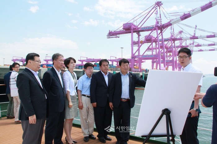 인천 중구의회 인천내항 8부두 전면 개방 및 인천 국제여객터미널 존치를 위한 특별위원회는 지난 3일 중구 지역의 당면사항인 국제여객터미널 이전 문제 및 내항 재개발 사업의 발전 방안을 모색하기 위해 인천신항을 견학했다. 사진은 이날 견학에 참여한 특별위원회 의원들의 모습.(사진제공=중구의회)