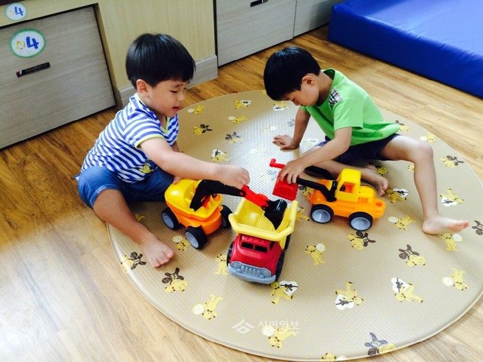 경북 구미초등학교병설유치원이 6일 원아 58명을 대상으로 구미 해평면 소재 구미유아교육체험장에서 오감 체험활동을 실시했다. 사진은 이날 체험활동에 참여한 어린이들이 장난감을 가지고 놀고 있는 모습.(사진제공=구미교육지원청)