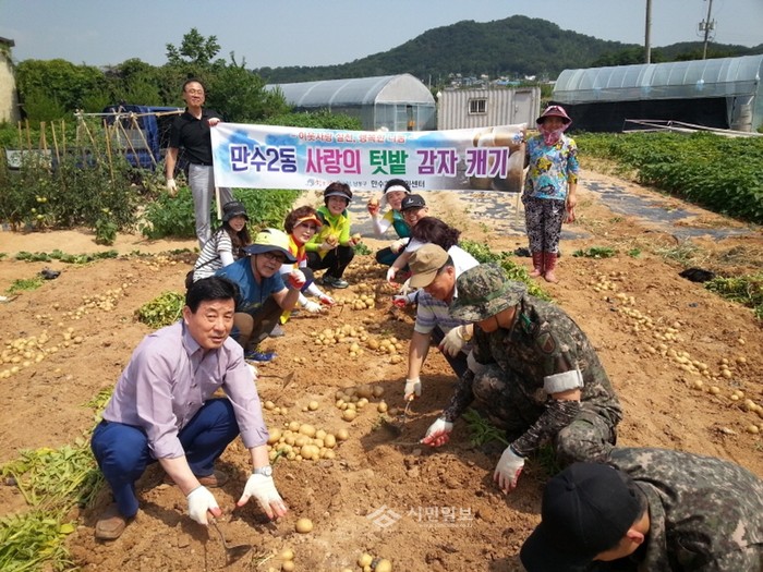 인천 만수2동 주민센터, 나눔감자 수확 구슬땀