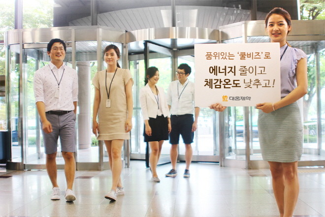 대웅제약 영업기획팀 김문중 주임은 “얇은 여름 옷이라도 긴 소매에 긴 바지를 입으면 에어컨 온도를 낮출 수밖에 없었다”며 “품위를 잃지 않는 반바지∙반팔셔츠 차림으로 더운 여름철을 비교적 쉽게 이겨낼 수 있을 것으로 기대한다”고 밝혔다.