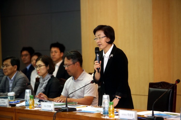 지난 8일 강남구청에서 열린 ‘강남구 관광진흥자문회의’에 참석한 신연희 강남구청장이 인사말에서 중동호흡기증후군(메르스) 사태로 인해 심한 타격을 입은 지역경제를 활성화해야 한다는 취지의 말을 하고 있다.(사진제공=강남구청)