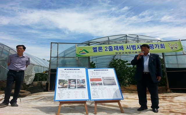 | ▲사진은 전남 영암군이 농업분야 성장을 위한 1읍면 1특작물 육성을 위해 황토멜론 재배현장에서 기술보급 설명회를 펼치고 있는 모습, | ||