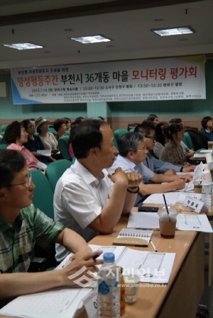 경기 부천시가 지난 14일 원미구청 복숭아홀에서 '부천시 36개동 여성친화도시 마을 모니터링 발표회'를 개최했다. 사진은 이날 발표회 심사위원들이 동별 발표자들의 모니터 결과 발표를 듣고 있는 모습.(사진제공=부천시청)