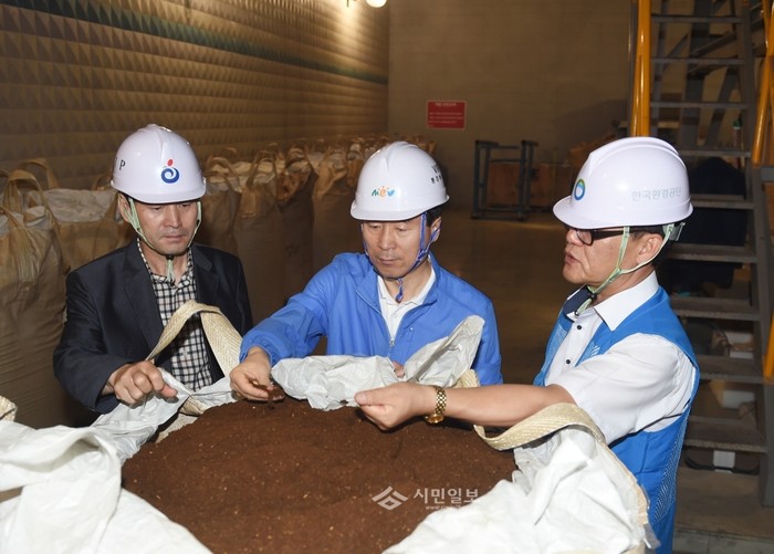 최근 윤성규 환경부장관이 시설 및 운영 점검을 위해 경기 하남시 친환경기초시설 '하남유니온파크'를 방문했다. 사진은 윤 장관(가운데)이 하남유니온파크의 운영 상황을 점검하고 있는 모습.