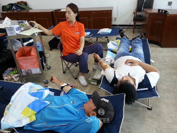 전남 진도군 지산면 봉사단체회원 150여명이 최근 지산면사무소 2층 회의실에서 대한적십자사 광주·전남혈액원 주관으로 헌혈 운동을 실시했다. 사진은 이날 헌혈에 참여한 회원들의 모습.(사진제공=진도군보건소)