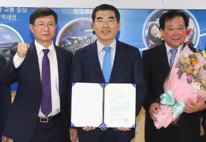 최근 경희대학교에서 열린 한국매니페스토실천본부 주최 ‘2015 전국 기초단체장 매니페스토 우수사례 경진대회’에서 양기대 경기 광명시장(가운데)이 폐광인 광명동굴을 문화관광지로 개발한 점을 인정받아 공약이행분야 최우수상을 받고 기념촬영을 하고 있다. (광명=류만옥기자)