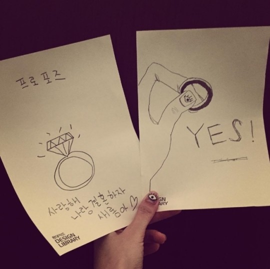사진 속에는 반지 그림과 함께 사랑을 고백하며 청혼하는 내용이 담긴 종이 2장의 모습이 담겨있다.