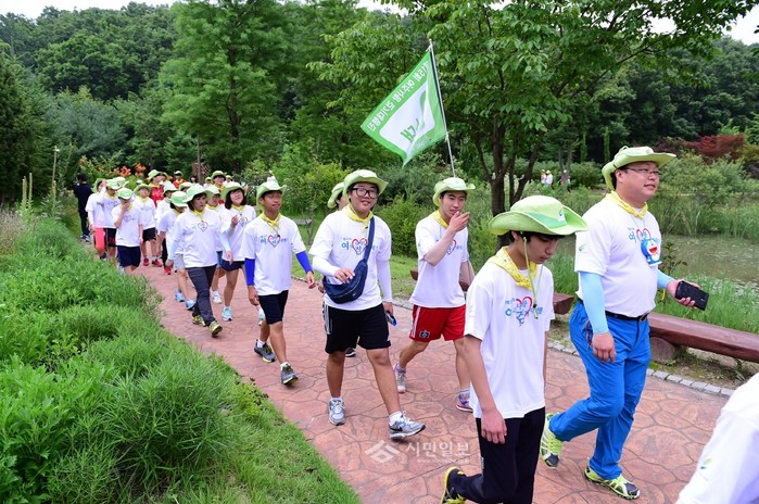 경기 여주시가 최근 지역내 초·중·고교 학생들을 대상으로 '여주사랑걷기대행진'을 진행한 가운데 참여 학생들이 지도교사와 함께 시내 주요 명소를 걷고 있다.(사진제공=여주시청)