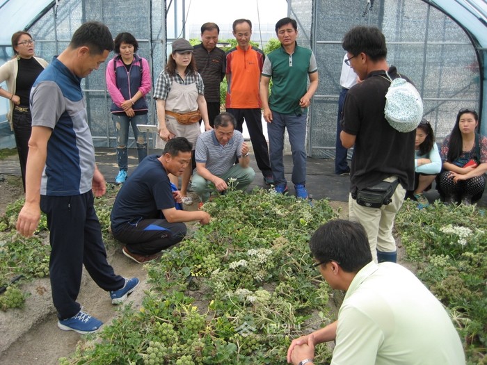 경기 김포시농업기술센터는 최근 농업인전문 과학영농기술 습득을 위한 현장교육을 실시했다. 사진은 이날 견학에 참여한 제9기 엘리트농업대학 임원진과 교학처 관계자 등이 지역 특화소득 작목 개발을 위한 현장교육을 받고 있는 모습.(사진제공=김포시청)
