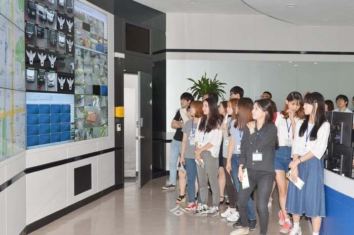 경기 동두천시는 최근 '2015 하계 부업대학생' 40명을 대상으로 지역내 주요 시설견학 및 제안발표회를 실시했다. 사진은 이날 참여 대학생들이 '폐쇄회로(CC)TV 관제센터'를 둘러보고 있는 모습.(사진제공=동두천시청)