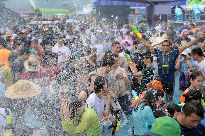 연일 계속되는 무더위 가운데 6일까지 전남 장흥물축제에서 펼쳐지는 지상최대의 물싸움이 관광객들의 큰 인기를 얻고 있다. 사진은 장흥군 탐진강과 우드랜드 일원에서 개최된 ‘제8회 정남진 장흥물축제’ 참가자들이 신나게 물싸움을 하고 있는 모습.(사진제공=장흥군)