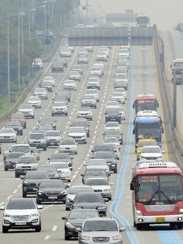 연휴 마지막 날인 16일 오후 경기 성남시 궁내동 서울톨게이트 부근에서 연휴를 즐기고 귀경하는 차량들이 서울 방향으로 들어서고 있다. 한국도로공사에 따르면 자정까지 수도권으로 43만대의 차량이 들어올 것으로 예상된다고 밝혔다.