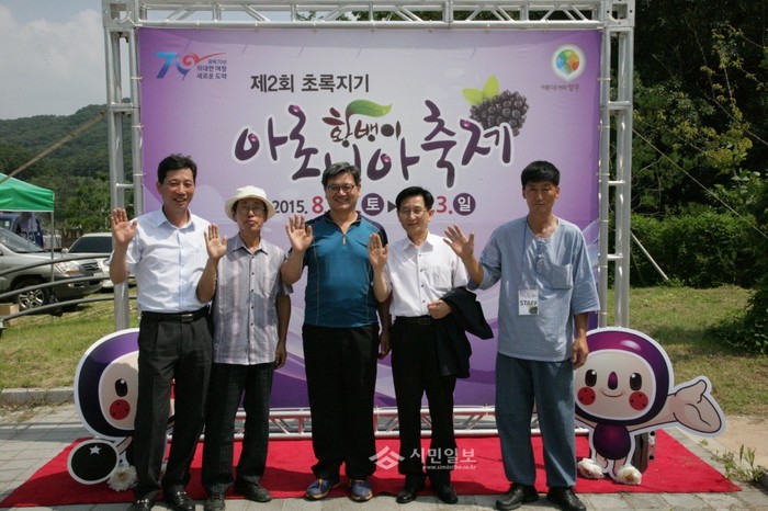 경기 양주시농업기술센터는 지난 22~23일 양일간 남면 초록지기 조소앙 선생 기념관 일원에서 '제2회 초록지기 아로니아 축제'를 진행했다. 사진은 아로니아 축제에 방문한 관계자들이 기념 사진을 찍은 모습.(사진제공=양주시청)
