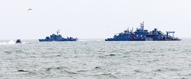 남북 고위급 접촉 사흘째. 북한이 공기부양정 10여 척을 서해 북방한계선(NLL) 인근에 배치한 24일 오후 인천 옹진군 연평도 인근 해상기지를 출발한 해군 고속정 참수리호가 이동하고 있다.