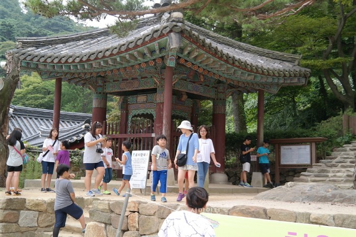 경기 부천시 원미구 중1동 주민센터는 최근 동복지협의체 주관으로 중1동 기획사업인 '사랑나눔 프로젝트 청소년 문화탐방' 행사를 열었다. 사진은 이번 문화탐방에 참여한 청소년들이 강화도 유적지를 방문해 유물을 살피고 있는 모습. (사진제공=부천시청)