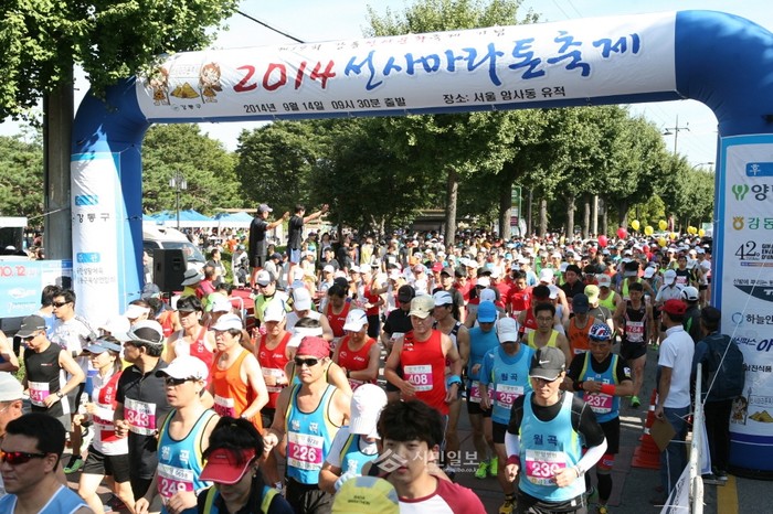 축제는 오전 9시30분 서울암사동유적 광장에서 출발 암사토끼굴, 한강시민공원을 돌아 출발지로 돌아오는 하프(21.0975km)와 10·5km 등 3개 코스로 진행된다.