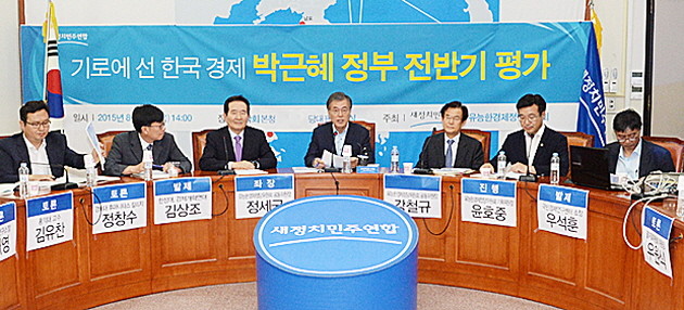 문재인 새정치민주연합 대표가 27일 오후 서울 여의도 국회에서 열린 유능한경제정당위원회 주최 기로에서 선 한국 경제-박근혜 정부 전반기 평가 토론회에서 모두발언 하고 있다.