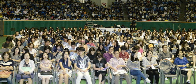 성균관대학교 '2016학년도 수시모집 전략설명회'가 열린 30일 오후 서울 송파구 잠실학생체육관에서 5000여 명의 학부모와 학생들이 전형별 지원전략 등 대입 수시와 관련된 설명을 듣고 있다.
